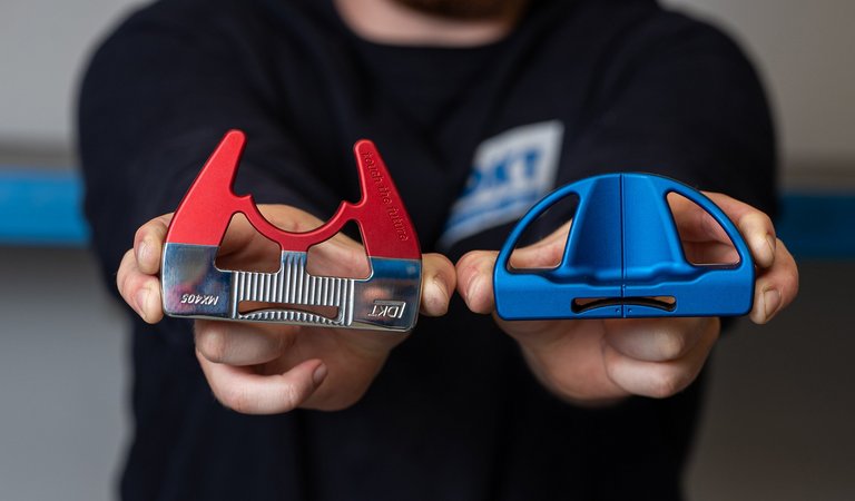 Wir wollen Sie nicht mit technischen Details langweilen wie mit der Beschreibung spezieller Rillen, die wir ins Putterblatt gefräst haben, der besonderen Kontur im Schlägerblatt oder dem Wellenkamm in der Unterseite des Putters. Entscheidend sind die Effekte – zum Beispiel dass die Spezialrillen für maximale Laufruhe sorgen und der Wellenkamm für eine stabile Gleiteigenschaft. Insgesamt haben wir diesen Schläger stabiler und langlebiger gemacht.