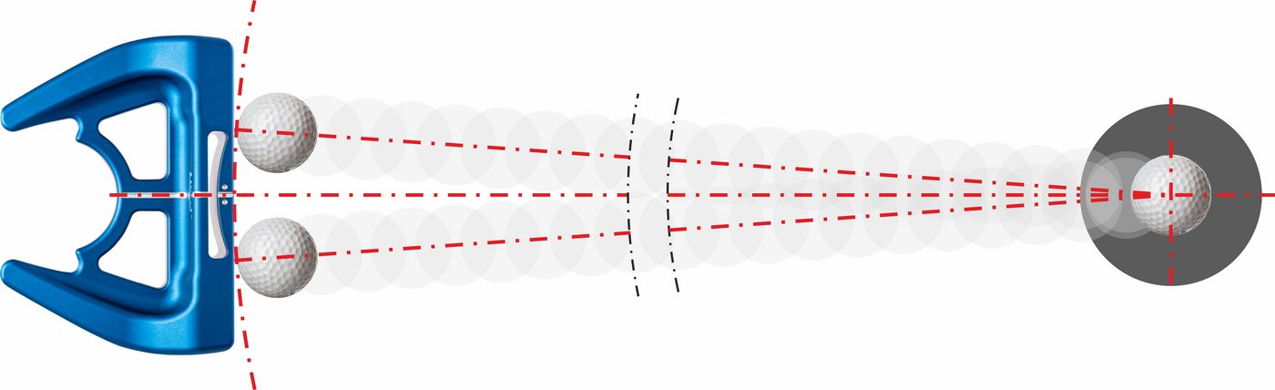 Schlagungenauigkeiten werden durch die Radiuskontur in der Schlagfläche automatisch korrigiert. Die Auswirkungen sind deutlich spürbar, bei Putts über 4m.
